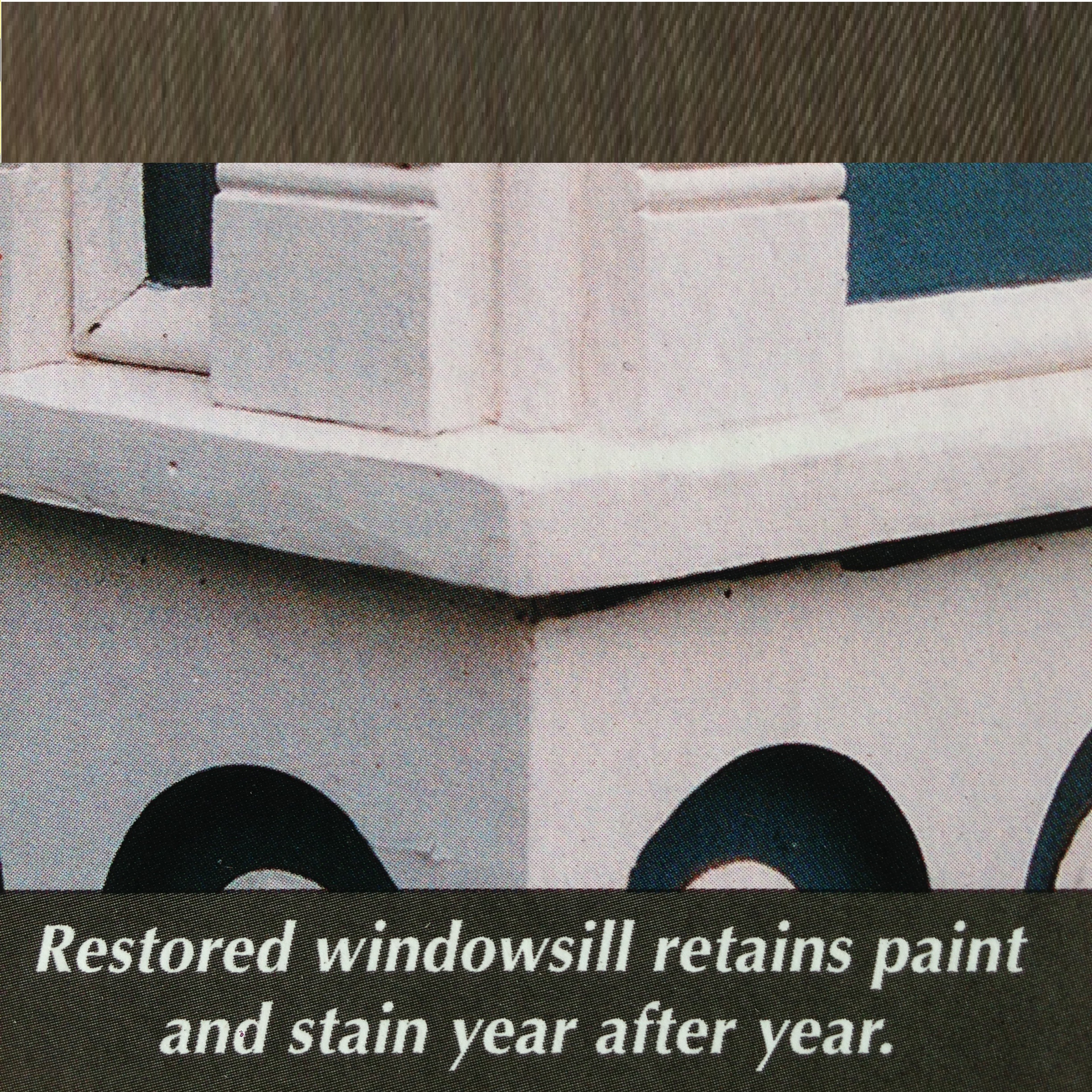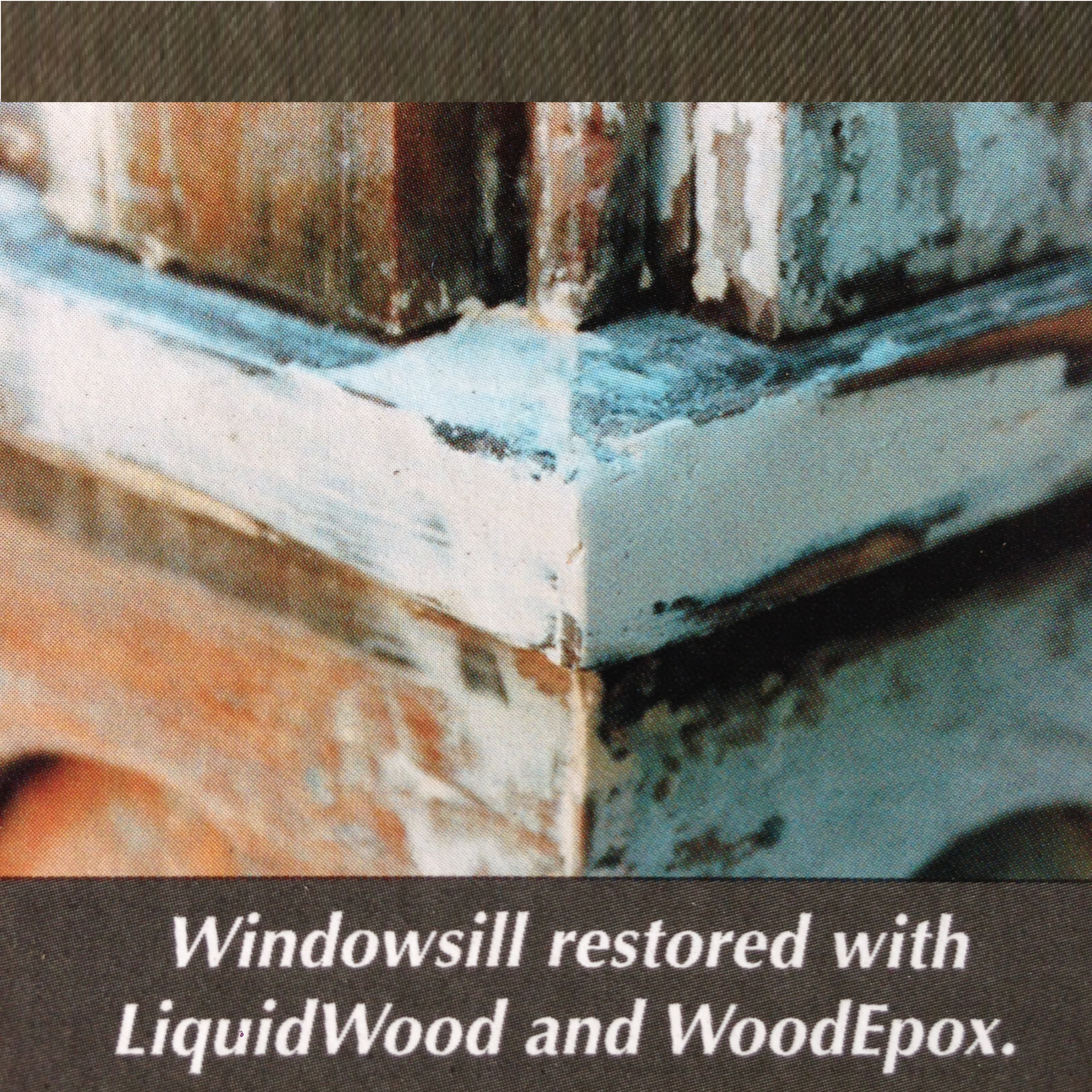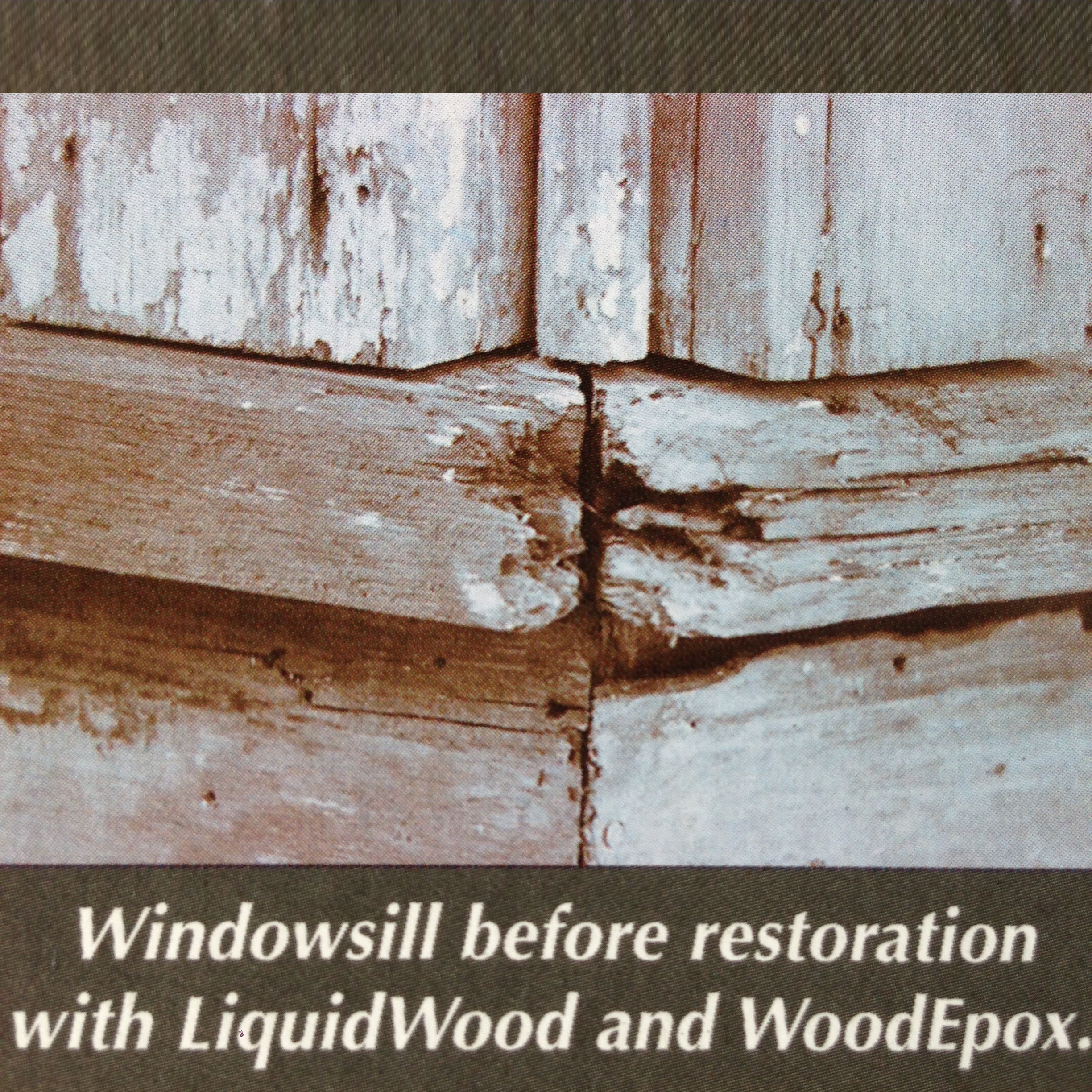 Abatron’s Wood Restoration system has been specified by the US Government, national restoration centers, museums, architects and other professionals, LiquidWood® and WoodEpox® represent the greatest advance ever in wood restoration history. They give new life to rotted, severely damaged windows, columns, frames, structural and decorative wood components. LiquidWood® consolidant reinforces, rebuilds and waterproofs wood by hardening after penetrating. When dry, it can be painted or glued. After the LiquidWood® has been applied, the surface is ready for WoodEpox®. WoodEpox®, a versatile, high strength, noshrink structural putty that is used to fill cracks, holes or voids of any size or can be used to replace missing parts of window sills, structural components, etc. After an item has been treated with this 2 part restoration system, it can be sawed, nailed, planed and machined just like wood.