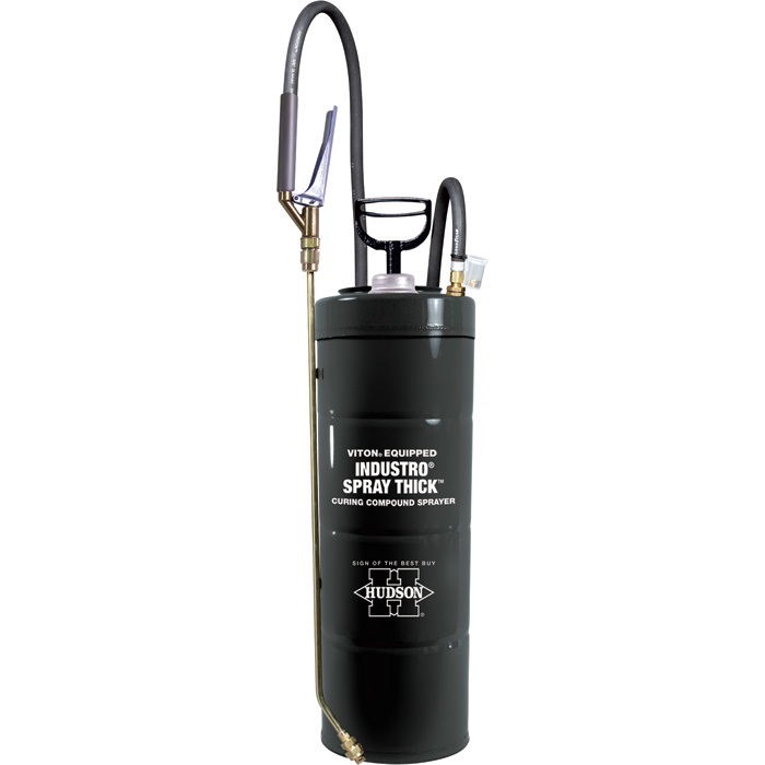 HUDSON 91004CCV Industro Curing Compound 3.5 Gal Sprayer – Spray Thick™ curing compound sprayer, Sprays up to 35% solids, Endural® epoxy-coated inside and out. Separate opening allows filling without removing pump, Goodyear® chemical resistant hose, Brass Thrustless On/Off valvelasts longer, shuts off quickly. Extra large aperature spray wand. HPP High Performance Pump. The Perfect Spray for use with Concrete Sealers, Curing Compounds, Waterproofing Repellents, and general Construction & maintenance use.
